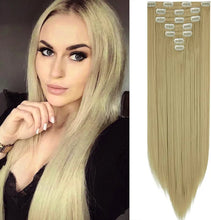 100% high quality human hair blend, Human Hair/Heat Resistant Synthetic hair which looks like real human hair 8 pieces, 16-18 clips, 22-24 inches, 145-160 grams. You can heat, style, straighten, flat iron, and curl. Please spray with water first before you heat makes the hair curl and straighten better.