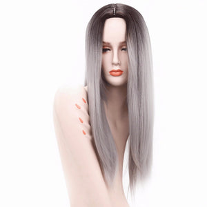Ombre Silver Grey / Blonde Long Straight Heat Resistant Synthetic Hair Wig For Women, Cosplay Or Party Hairpiece 26inches